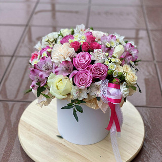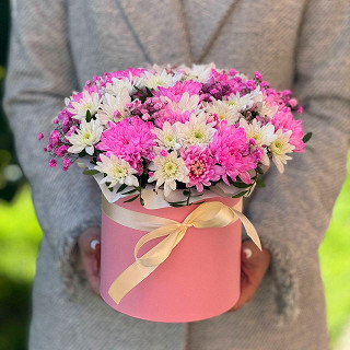 Цветы в шляпной коробке в